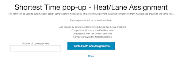 • Have the system pre-assign competitors to heats/lanes based on their entered best times